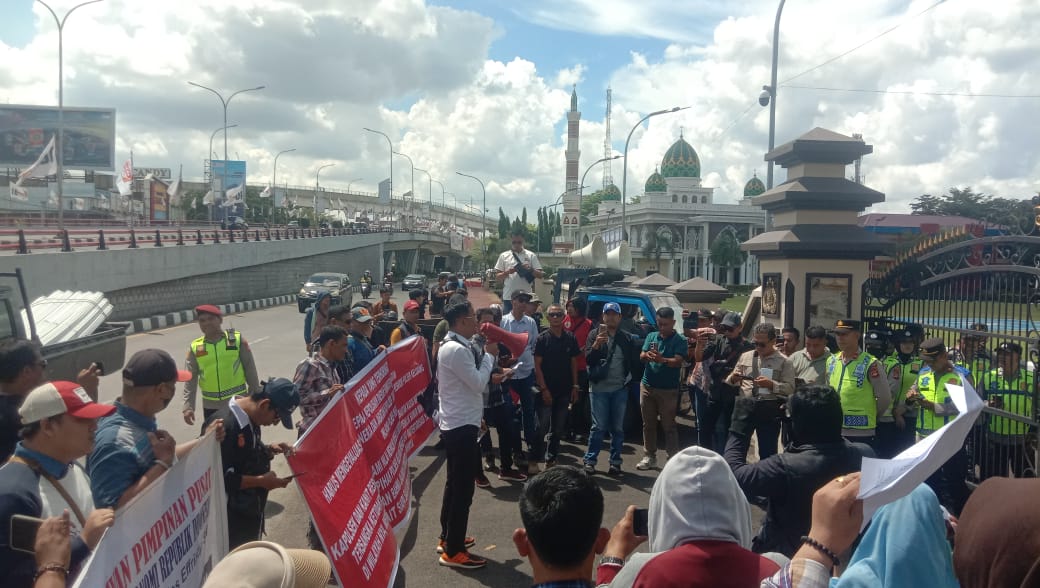 POSE RI gelar aksi damai di Polda Sumsel desak pencopotan Kapolsek Keluang usai sembilan kebakaran minyak ilegal tanpa satu pun tersangka.